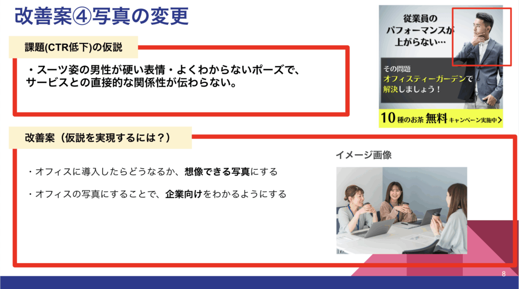②CTRやコンバージョン数の低いバナーの理由、仮説出し