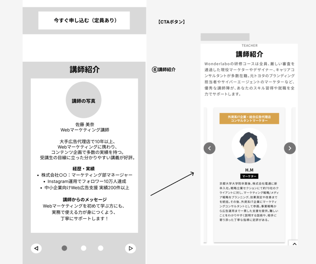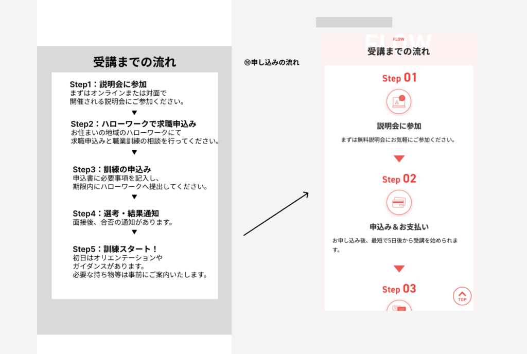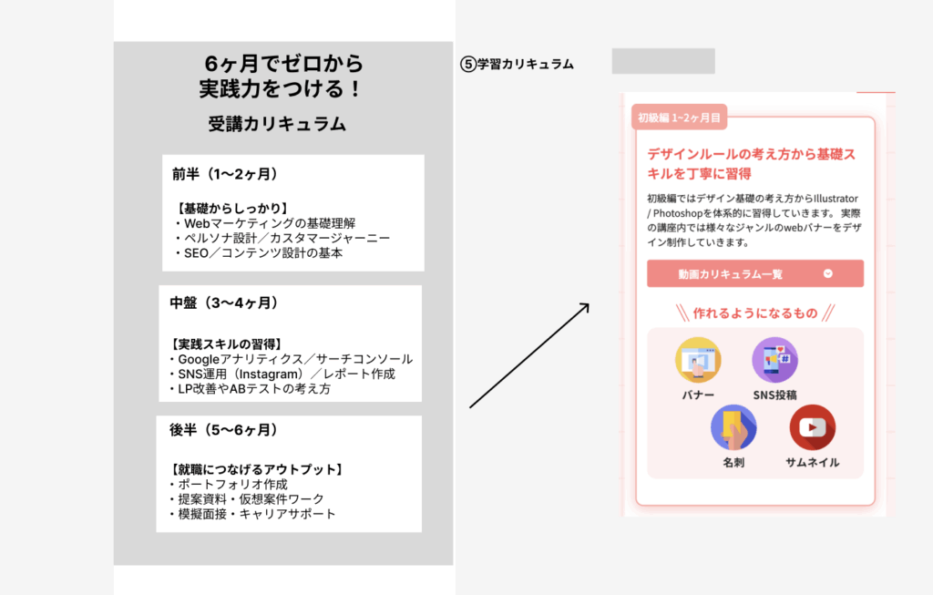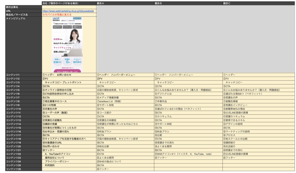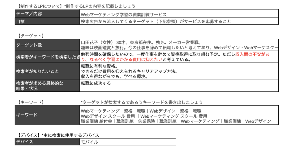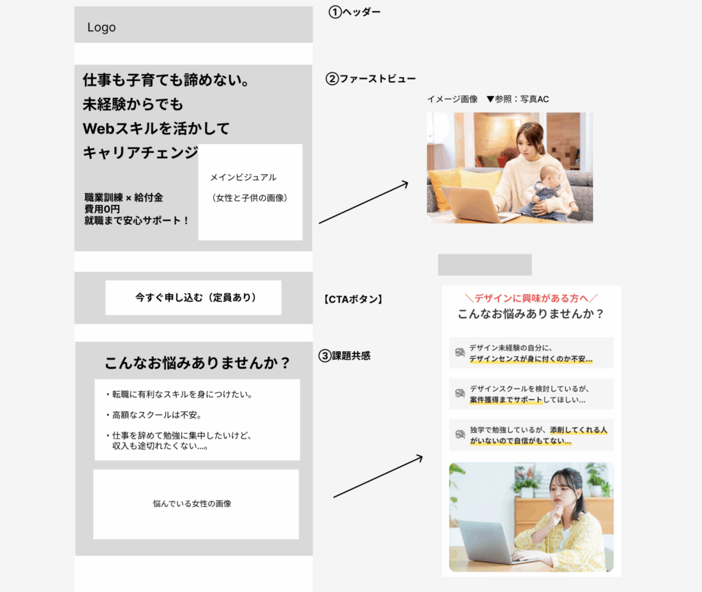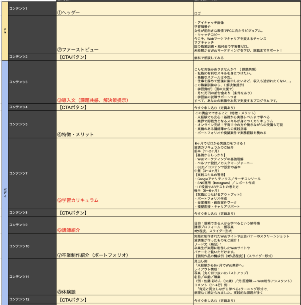 集客担当者の方に、申し込み数を上げるための施策としてLP改善提案をすることを想定し、作成しました。