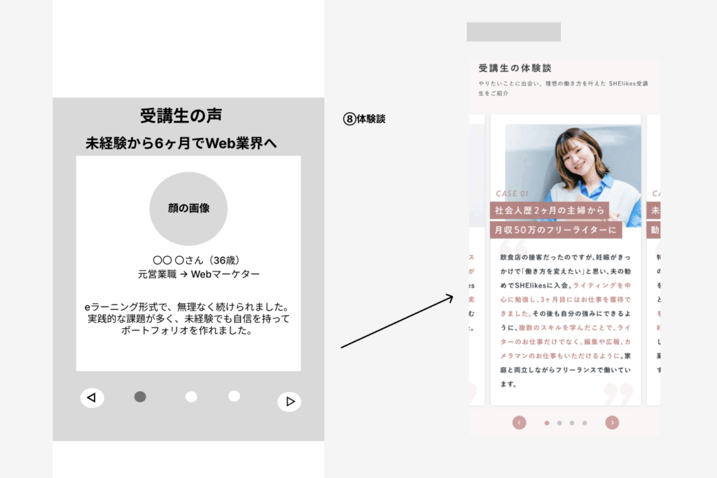CTAは、ユーザーが迷わず自然に行動できるように、配置する数と位置を慎重に検討しました。多すぎず少なすぎず、効果的なタイミングでの提示を意識しています。