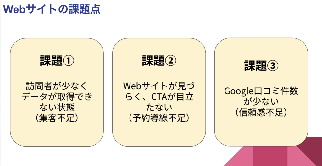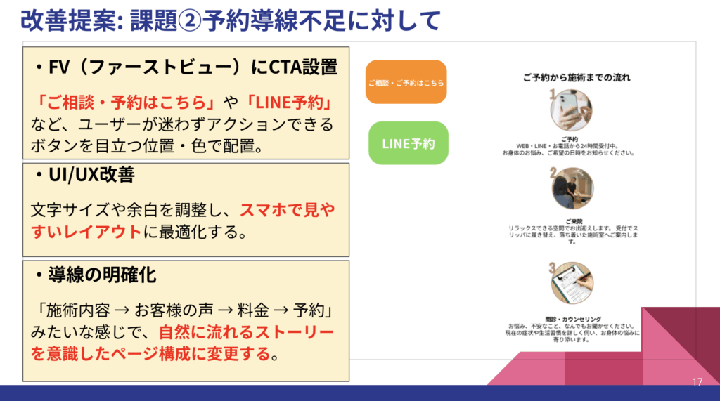 訓練校の課題として、整体院様向けのWebサイト改善提案書を作成しました。